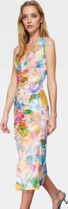 Bu elbise, 174 cm boyundaki model tarafından S/36 beden olarak giyilmiştir. Bodycon kalıbıyla vücuda tam oturur. Bu nedenle, bedeninize uygun bedeni seçmeniz önemlidir. Midi boyu ve V yakasıyla farklı kombin seçenekleri sunan elbiseyi, topuklu ayakkabılarla şık bir gece görünümü veya düz ayakkabılarla günlük şık bir stil yaratmak için tercih edebilirsiniz. Her mevsim ve her ortama uyum sağlayan bu elbiseyi, gardrobunuzun vazgeçilmez parçalarından biri haline getireceksiniz.