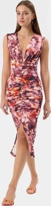 Bu elbise, 174 cm boyundaki model tarafından S/36 beden olarak giyilmiştir. Bodycon kalıbıyla vücuda tam oturur. Bu nedenle, bedeninize uygun bedeni seçmeniz önemlidir. Midi boyu ve V yakasıyla farklı kombin seçenekleri sunan elbiseyi, topuklu ayakkabılarla şık bir gece görünümü veya düz ayakkabılarla günlük şık bir stil yaratmak için tercih edebilirsiniz. Her mevsim ve her ortama uyum sağlayan bu elbiseyi, gardrobunuzun vazgeçilmez parçalarından biri haline getireceksiniz.
