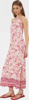 %100 viskon kumaşından üretilen elbise, yumuşaklığı ve nefes alabilirliğiyle her an konforlu hissetmenizi sağlar. A kesim kalıbı ve rahat yapısıyla hareket özgürlüğünüzü kısıtlamaz. Halter yaka ve reglan kol detaylarıyla modern ve şık bir görünüm sunar. Elbisenin canlı çiçek desenli tasarımı, feminenliğinizi ön plana çıkarırken, maxi boyu ile her ortamda rahat ve şık hissetmenizi sağlar. Astarı bulunmayan elbise, gün boyu serin kalmanızı sağlar.