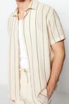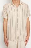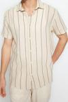 Şık Çizgili Desen Gömlek Yaka Limited Edition Regular Fit Çizgili Dokulu Yazlık Gömlek