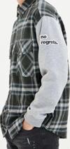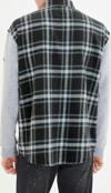 Kareli deseniyle klasik ve zamansız bir tarz sunan lacivert oversize fit kolları örme çift cep kapaklı kışlık gömlek, her yaş grubuna hitap eder.