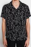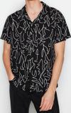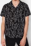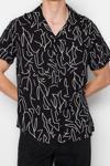 Şık Geometrik Desen Apaş Yaka Regular Fit Apaş Yaka Kısa Kol Dökümlü Geometrik Yazlık Gömlek