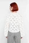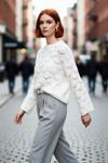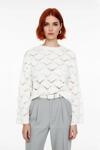 Ürün Özellikleri: Oversize kalıp, akrilik materyal, ajurlu desen, bisiklet yaka, İspanyol kol, triko kumaş, ekru renk.