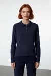 Ürün Özellikleri: Regular kalıp, yünlü materyal, düz desen, polo yaka, uzun kol, triko kumaş, gri renk.