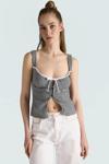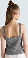 Yaz aylarının vazgeçilmez parçası olacak bu şık bluz, kendine özgü kare desenli tasarımı ve rahatlığıyla dikkat çekiyor. Hafif ve nefes alan örme kumaşından üretilen bluz, gün boyu konforlu bir kullanım sunuyor. Fitted kalıbıyla vücut hatlarınızı zarifçe ortaya koyarken, bağcıklı detayı da şıklığınıza şıklık katıyor. Polyester ve elastan karışımı kumaş yapısı sayesinde kolayca şeklini koruyor ve kırışmıyor. Regular boyuyla farklı kombinler oluşturmak için ideal olan bu bluz, günlük yaşamınızda şık ve modern bir görünüm elde etmenizi sağlar. İster kot pantolonlarla isterseniz de şortlarla kombinleyerek farklı stilleri deneyebilirsiniz. Makinede yıkama kolaylığı sağlayan bu bluz, uzun süreli kullanım için dayanıklı ve kaliteli bir seçenektir.