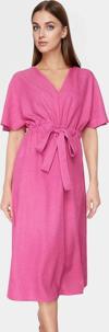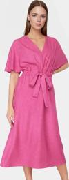 Ersefa Şık Keten Görünümlü Kuşaklı Midi Elbise Rahat ve Nefes Alabilir Günlük Kullanım İçin Modern Stil