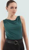Modal kumaşın yumuşak ve ipeksi dokusu, teninizde eşsiz bir his bırakırken, drapeli tasarımı zarif bir görünüm sağlar. Aksesuar detayı, bluza şık ve modern bir hava katıyor. Kolsuz tasarımı sayesinde yaz sıcağında serin ve rahat hissetmenizi sağlar. Bluzun regular kalıbı, vücudunuza kusursuz bir şekilde oturur ve her türlü alt giyim ile kolayca kombinlenebilir.