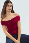 Yaz aylarının vazgeçilmez parçası olacak bu bordo bluz, şıklığı ve rahatlığı bir araya getiriyor. Carmen yakası ve fitted kalıbıyla dikkat çeken bluz, vücut hatlarınızı zarifçe ortaya koyarken, kısa kolları ile yaz sıcağında serin kalmanızı sağlar. Yumuşak dokusuyla gün boyu konfor sunan örme kumaş, nefes alabilir özelliği ile de öne çıkıyor. Düz deseni ve basic siluetiyle her kombininize uyum sağlayacak bu bluz, şıklığınıza şıklık katacak.
