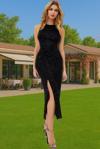 PayBuy Şık Parıltılı Pullu Örme Abiye Elbise Halter Yaka Midi Boy Özel Tasarım Trend Tasarım Mükemmel Uyum