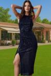 PayBuy Şık Parıltılı Pullu Örme Abiye Elbise Halter Yaka Midi Boy Özel Tasarım Trend Tasarım Mükemmel Uyum