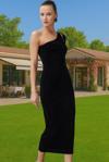 Ersefa Şık Parıltılı Simli Bodycon Elbise Asimetrik Yaka Tasarım Modern Stil Şık Görünüm Modern Stil