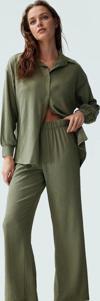 Rahatlığı ve şıklığı bir arada arayanlar için mükemmel bir seçim olan bu yeşil gömlek pantolon takımı, yaz aylarında stilinizi taçlandıracak. 100% polyester dokuma kumaştan üretilen takım, gün boyu nefes alabilir ve konforlu bir kullanım sunuyor. Regular kalıbı ile her vücut tipine uyum sağlarken, düz tasarımı ve düşük kol detayı ile modern ve şık bir görünüm kazandırıyor. Cepsiz tasarımı minimal bir tarz arayanlar için ideal.