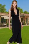 Şık Sırt Dekolteli Maxi Plaj Elbisesi Keten Karışımlı Dokuma Kumaş Şık Görünüm Mükemmel Uyum