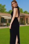 Yandan Büzgülü Yarım Balıkçı Yaka Standart Beden Fitilli Görünümlü Fit Kesim Uzun Elbise - Image 1