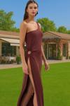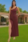 Ersefa Şık Tek Omuz Maxi Elbise Yırtmaçlı Polyester Yazlık Trend Tasarım Profesyonel Görünüm Trend Tasarım