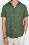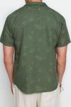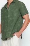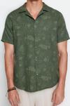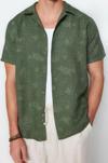 Şık Tropikal Desen Apaş Yaka Regular Fit Apaş Yaka Keten Gömlek