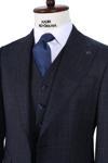 Erkek Lacivert Poliviskon Trend Yelekli Desenli Slim Fit Sivri Yaka Takım Elbise - Image 1