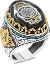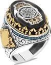 Gümüş Hediye Al Sıkma Kehribar Üzerine Mühr-i Süleyman ve Duası İşlemeli İsim Harf Yazılı 925 Ayar Gümüş Erkek Yüzük