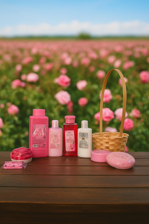 - Gül suyu, kolonya, şampuan, vücut losyonu, krem, mum ve sabun gibi kişisel bakım ürünlerini bir arada sunan pratik ve kullanışlı bir hediye.