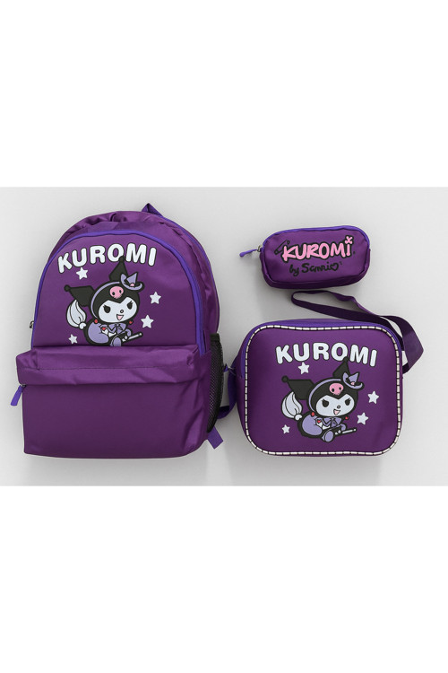 Çocuk Okul Seti Konforlu Sırt Destekli 3Bölmeli Okul Çantası 3lü Kuromi Okul Çanta Seti 40