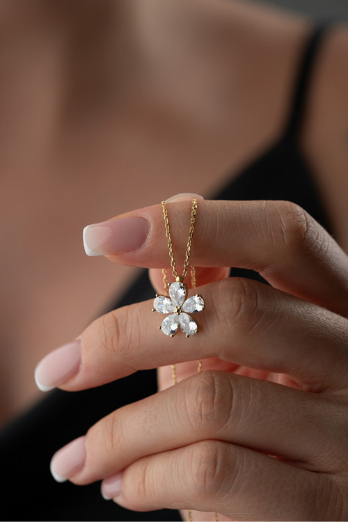 Silvano Jewelry 925 Ayar Gümüş Gold Nergis Çiçeği Kolye