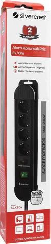 Silver Crest 1.5 Metre 3G 1.5 MM 900 Joule 4 Lü Akım Korumalı Gri Priz Çoklayıcı