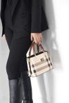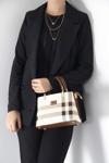 Krem ve taba renk kombinasyonu ile dikkat çeken bu çanta, her kıyafetle kolayca kombinlenebilir.