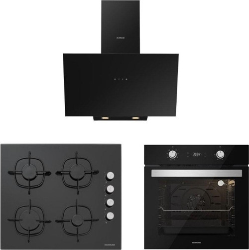 Silverline Siyah Cam Ankastre Set (3481 Flam 60+cs5335b02+bo6504b01)