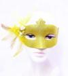 Sim İşlemeli İnci Boncuk Detaylı Tüylü Balo Maskesi Altın Renk 13x18 cm (5365)