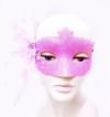Sim İşlemeli İnci Boncuk Detaylı Tüylü Balo Maskesi Pembe Renk 13x18 cm (5365)