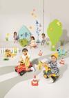 Küçük çalışanın bina projesi üzerinde çalışırken rahat oturması için geniş bir koltuk ile donatılmıştır ve gerektiğinde 360 derece döndürülebilir.