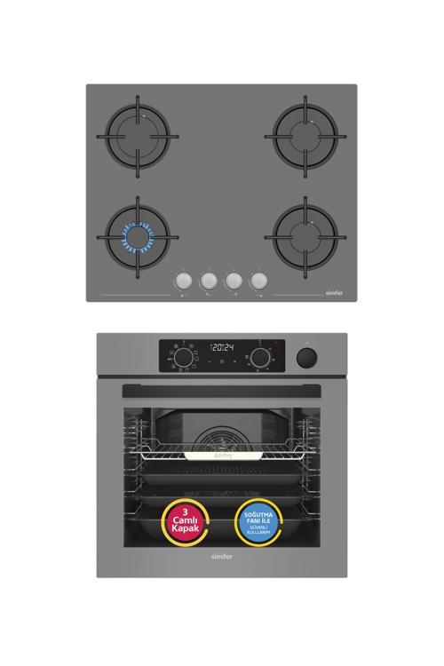 Simfer 3656-N 65CM Ankastre Gri Cam Ocak 4G Emaye Izgara
