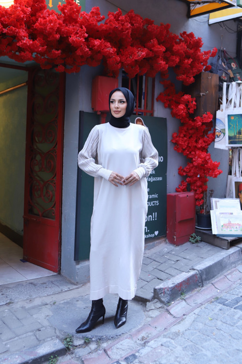 Şıklığı ve konforu bir arada sunan Simli Balon Kol Merserize Elbise, tesettür giyimin zarif detaylarını modern bir tasarımla buluşturuyor. Balon kol detayıyla feminen bir görünüm kazandıran elbise, özel günlerde ve günlük şıklıkta tercih edebileceğiniz ideal bir modeldir.