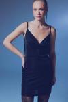 Degaje yaka, ayarlı ip askılı, simli salaş bluz.