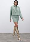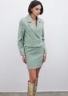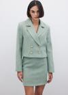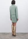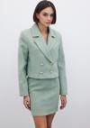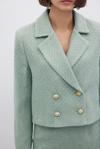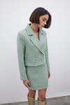 Kruvaze yaka, uzun geniş kol, iç astralı, vatkalı, ön düğmeli, simli kısa tüvit ceket.