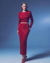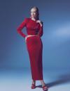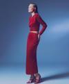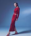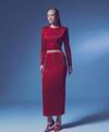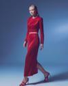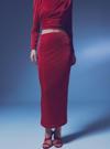 Yüksek ve hafif lastikli bel, arka fermuarlı, iç astarlı, arka yırtmaçlı, esnek, simli midi etek.
