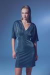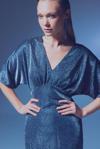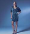 V yaka, yarası kol, astarlı, arka fermuarlı, astarlı, simli mini elbise.