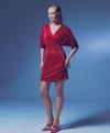 V yaka, yarası kol, astarlı, arka fermuarlı, astarlı, simli mini elbise.