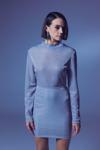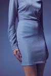 Yüksek bel, esnek, arka fermuarlı, astarlı, simli mini etek.