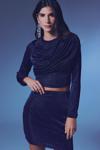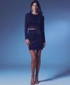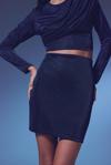 Yüksek bel, esnek, arka fermuarlı, astarlı, simli mini etek.
