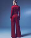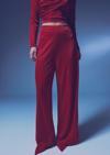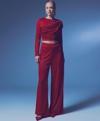Yüksek bel, yan fermuarlı, astarlı, esnek, simli salaş pantolon.