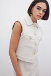 Ön düğmeli, cepli, kolsuz, simli tüvit yelek.