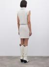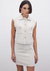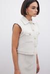 Ön düğmeli, cepli, kolsuz, simli tüvit yelek.