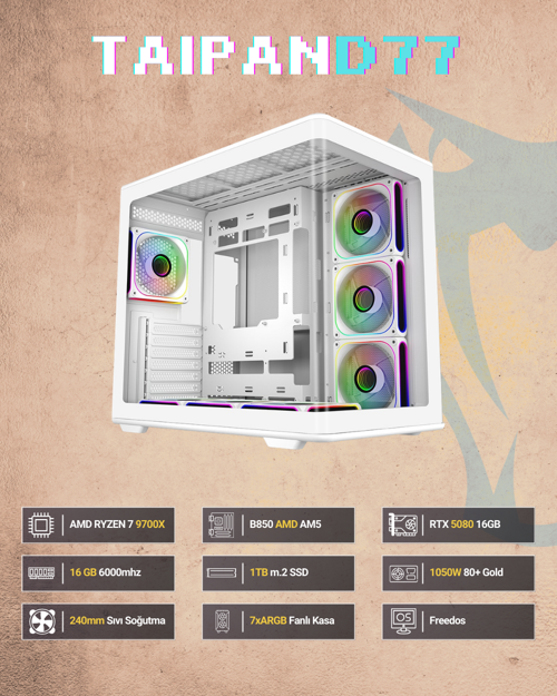Sinerji Taipan D77 Gigabyte GeForce RTX5080 AERO OC SFF 16GB Ryzen 7 9700X 16GB DDR5 1TB NVMe M.2 SSD