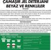 Sır Çamaşır Jel Deterjanı Beyaz ve Renkliler 3 L Beyaz ve renkli kumaşlar için üretilmiştir. Lekeleri çıkarır ve renkleri korur. Ürünü, suyun kirlilik derecesine ve sertliğine göre dozlayın. Daima üzerinde belirtilen yıkama talimatlarına uyunuz. Her çamaşır türü için doğru programı seçin. Benzer renkli giysileri soğuk suyla yıkayın. Yün veya ipek için önerilmez. 5ºC'nin üzerindeki bir sıcaklıkta saklayın ve ürünü doğrudan güneş ışığına maruz bırakmayın. Kullanım Şekli: Otomatik makinede (normal ve orta su sertliği için ) • Normal kirli çamaşırlarda: 1/3 kapak (~30 ml) • Çok kirli çamaşırlarda: 2/3 kapak (~60 ml ) • Elde yıkamada (normal su sertliği için) 5 L suya 1/2 kapak (~45 ml) • Sert ve çok sert su için yanda belirtilen miktarlara 1/6 ölçek (15 ml ) deterjan daha eklenmesi önerilir. • Sır çamaşır deterjanını