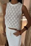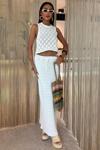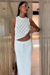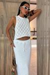 - Zarif beyaz rengiyle her ortamda şıklığınızı koruyan sırt çapraz detaylı triko takım.; - Sade ve düz deseni ile zamansız bir görünüm sunar, günlük kullanım için idealdir.; - Rahat kalıbı sayesinde gün boyu konforlu bir deneyim sağlar; standart beden seçeneğiyle her vücut tipine uyum gösterir.; - Triko kumaşı, yumuşak dokusuyla cildinizle dosttur ve soğuk havalarda sıcak tutar.; - Uzun boy tasarımı ile bacaklarınızı zarifçe sararak feminen bir siluet oluşturur.; - Kolsuz üst parça, yaz ayları için serinlik katarken, etek kısmı ise modern bir dokunuş ekler.; - Cool & comfort persona'ya sahip bu takım, rahatlığı ön planda tutarak stil sahibi olmanızı sağlar.; - Casual koleksiyonun parçası olarak günlük kombinlerinizde kolayca yer bulur; her sezon tercih edebileceğiniz çok yönlülüğe sahiptir.; - Kare yaka detayı ile dekolte bölgesini zarifçe vurgular ve feminen çizgilere sahip olmanızı sağlar.; - Alt-üst takımı olarak tasarlanmış olan bu set, pratikliği ve şıklığı bir arada sunar; bluz ve etek kombinasyonuyla tamamlanan bu set, gardrobunuzdaki temel parçalardan biri haline gelecek.; - Kolay bakım imkanı sunan yıkama talimatları sayesinde uzun süre ilk günkü gibi kullanabilirsiniz; 30 derecede makinada yıkama yapabilirsiniz.; - %70 pamuk içeriğiyle nefes alabilen yapıda olan bu takım, cilt dostu materyaliyle gün boyu rahatlık vaad ederken %30 polyester karışımı dayanıklılığı arttırır.