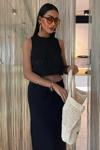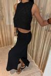 - Zarif siyah rengiyle her ortamda şıklığınızı koruyan sırt çapraz detaylı triko takım.; - Düz deseni sayesinde kolayca kombinlenebilir ve zamansız bir tarz sunar.; - Rahat kalıbı ile gün boyu konforlu bir kullanım sağlar; günlük aktivitelerinizde size eşlik eder.; - Kadın ve kız kullanıcılar için ideal, her yaş grubuna hitap eden tasarım.; - Triko kumaşı sayesinde yumuşak dokunuşuyla cildinize nazikçe sarılırken, uzun boyu ile zarafeti ön plana çıkarır.; - Siyah renk seçeneğiyle kolayca diğer giysilerle uyum sağlayarak gardırobunuzdaki çok yönlülüğü artırır.; - Türkiye'de üretilmiş olup yerel üretim avantajını yansıtır.; - Standart bedeniyle geniş bir kullanıcı kitlesine hitap eder; vücut hatlarınıza uygun rahatlık sunar.; - Kolsuz tasarımı yaz ayları için serinlik ve hareket özgürlüğü sağlarken, kare yaka detayı modern bir görünüm kazandırır.; - İki parçadan oluşan bluz-etek seti olarak tasarlanmıştır; hem işlevsel hem de estetik bir seçimdir.; - 30 derecede makinede yıkama imkanıyla pratik bakım avantajları sunar.; - %70 pamuk içeriğiyle nefes alabilir yapıda olup, %30 polyester karışımı dayanıklılığı arttırırken konforundan ödün vermez.