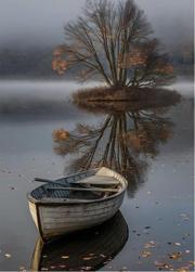 Karizmart Sisli Göl Manzarası Ve Kayık Desenli Ahşap Tablo