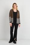 Kadın Çizgili Düğmesiz Ceket 24908 Vizon