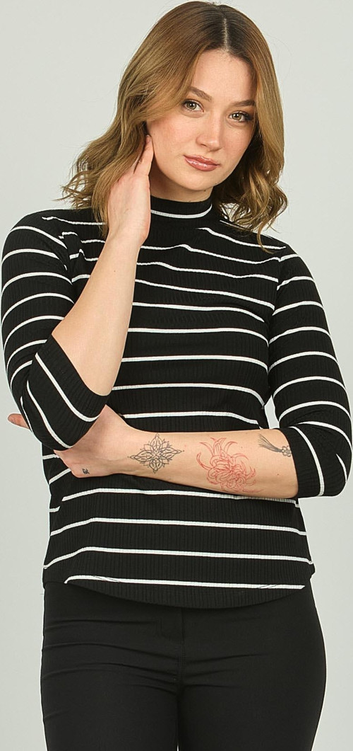 Detay: Boğazlı, çizgili, pamuklu bluz;